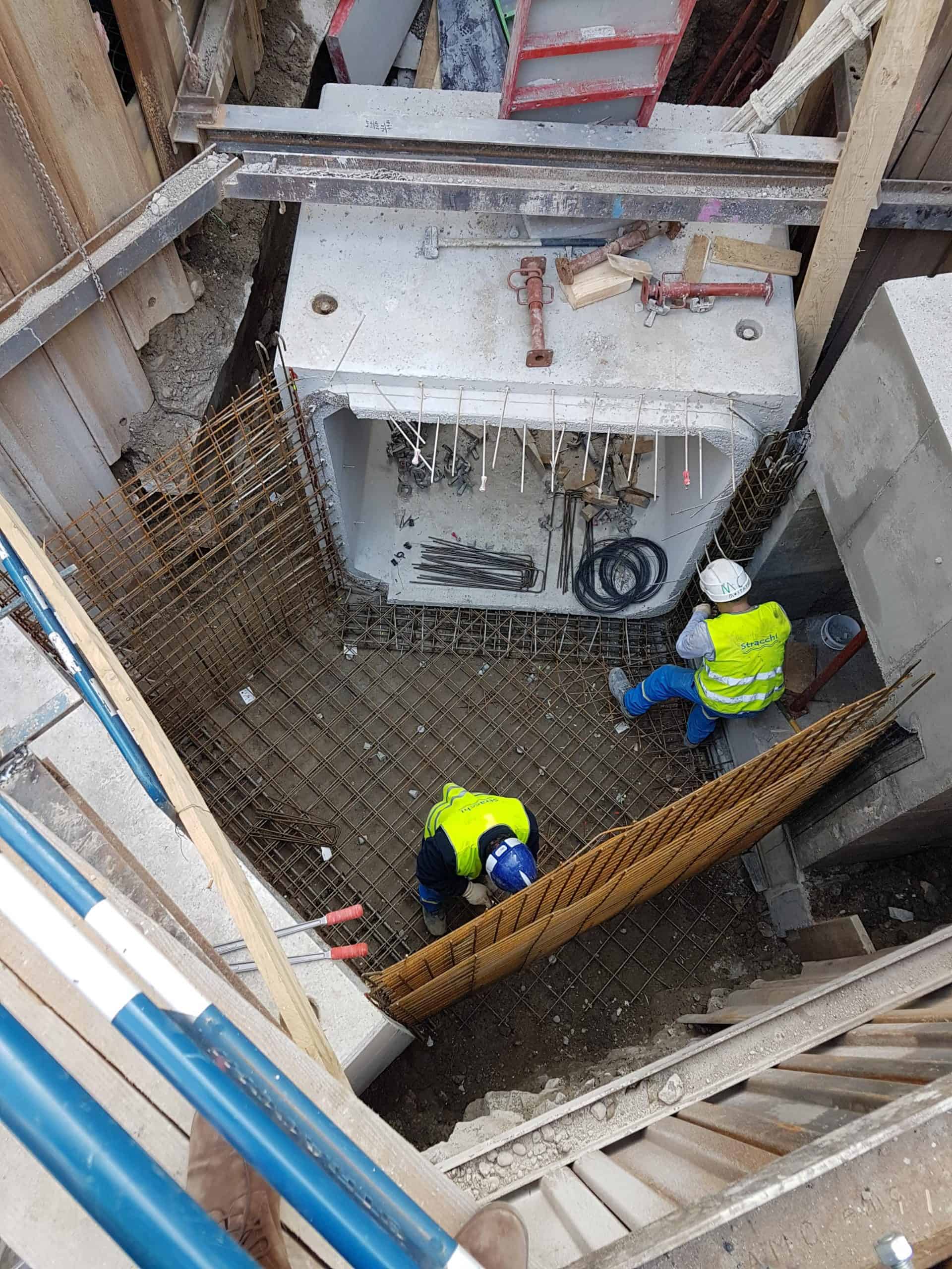 Nous maîtrisons les techniques de blindage et soutènement en milieu urbain à toute profondeur et dans tous terrains, la pose de collecteur à grande profondeur et les opérations de rabattement de nappe.